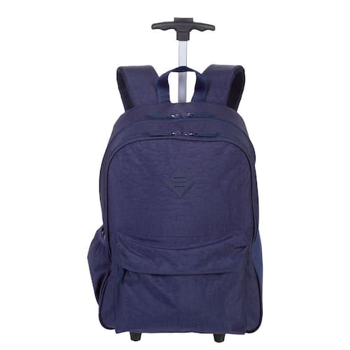 Moch car externo sestini rolling crinkle - azul leve, prática e ainda com carrinho. A sestini rolling é a pedida certa para o dia a dia de quem passa o dia fora de casa e precisa levar muita coisa. Feita em náilon crinkle - aquele com aspecto amassado - a mochila que já era fácil de carregar tem a vantagem do sistema de rodinhas e carrinho. Ainda assim, vem com alça espumada de costas. São dois compartimentos, mais o bolso frontal, todos com fecho de zíper, e um bolso lateral para garrafinha. Azul Grande Mochila carrinho Marca: Não Informado