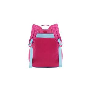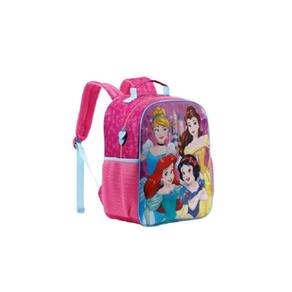 Em tamanho 16, produzida em poliéster resistente e estampado. Painel frontal PVC patch com detalhes com glitter - Compartimento principal amplo , 2 bolsos laterais mesh, zíper com puxadores personalizados, alça de mão em nylon com poliester e piping forrado. Alças acolchoadas com regulagem de tamanho para maior conforto.