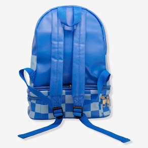 Altura: 23,5m| Largura: 27,5cm| Comprimento: 10cm| Material: PVC e PU| Bolsos: 1 Principal e 1 frontal Lancheira: Altura: 17cm| Largura: 27,5cm| Comprimento: 7cm|Térmica: Sim| Material: PVC e PU