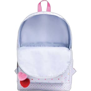 Mochila Academie Coracao Metalizado Azul Tilibra Marca: Tilibra Académie tem um mix completo, com estampas diversificadas e atemporais, para tornar as atividades do dia a dia mais práticas. A Mochila de Costas Académie Corações Metalizados Azul é confeccionada em material resistente, com base reforçada, parte interna forrada e alças acolchoadas e ajustáveis para garantir conforto a quem utilizá-la. Possui dois compartimentos, sendo um bolso externo e uma abertura principal, com divisória interna, além de um bolso lateral, para armazenamento de materiais do dia a dia. Alça: Acolchoada, Ajustável Base: Forrada Bolso: Externo com fechamento em zíper, Frontal, Lateral Detalhe: Foil, Pompom Fechamento: Em zíper Formato: L 290mm x A 430mm x P 120mm : contra defeitos de fabricação Material: Poliéster Puxador: Em metal Marca: Não Informado