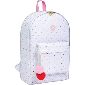 Mochila Academie Coracao Metalizado Azul Tilibra Marca: Tilibra Académie tem um mix completo, com estampas diversificadas e atemporais, para tornar as atividades do dia a dia mais práticas. A Mochila de Costas Académie Corações Metalizados Azul é confeccionada em material resistente, com base reforçada, parte interna forrada e alças acolchoadas e ajustáveis para garantir conforto a quem utilizá-la. Possui dois compartimentos, sendo um bolso externo e uma abertura principal, com divisória interna, além de um bolso lateral, para armazenamento de materiais do dia a dia. Alça: Acolchoada, Ajustável Base: Forrada Bolso: Externo com fechamento em zíper, Frontal, Lateral Detalhe: Foil, Pompom Fechamento: Em zíper Formato: L 290mm x A 430mm x P 120mm : contra defeitos de fabricação Material: Poliéster Puxador: Em metal Marca: Não Informado