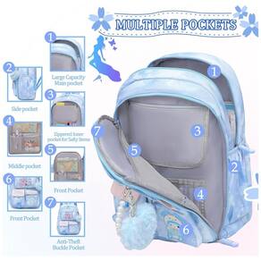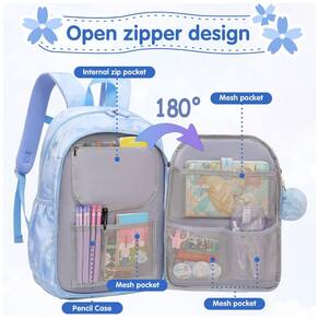 O modelo utiliza tecido resistente a rasgos e respingos, com alças de ombro acolchoadas e painel traseiro respirável para maior conforto em uso prolongado. Os múltiplos bolsos e compartimentos facilitam o acesso a objetos menores, enquanto o visual colorido e os detalhes de acabamento tornam a mochila adequada tanto para ambiente escolar quanto para passeios e viagens curtas.