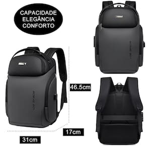 Com 46,5 cm de altura, 31 cm de largura e 17 cm de profundidade, a mochila possui um compartimento principal espaçoso, ideal para transportar notebooks de até 15,6 polegadas, documentos, cadernos e demais itens essenciais. Internamente, conta com divisórias que facilitam a organização, permitindo o armazenamento seguro de objetos pessoais.