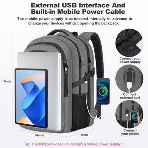 Esta é uma mochila grande para laptop empresarial feita de tecido de poliéster impermeável e ecológico, equipada com zíperes de metal personalizados. Quando utilizado como mochila de viagem, o tecido impermeável e resistente ao desgaste pode ter um desempenho melhor. - ? [Garantia vitalícia - Garantia de equipe ]: Este produto tem um serviço pós-venda abrangente da equipe, garantindo que todos os produtos comprados tenham uma garantia vitalícia. - ?[Seguro e confidencial]: A alça de bagagem oculta atrás da mochila de viagem extra grande pode colocar a mochila de viagem com segurança na mala sem afetar a aparência. O bolso antirroubo acolchoado na parte traseira garante que seus pertences não sejam perdidos tão facilmente, seja um passaporte, carteira ou telefone, esta mochila escolar pode ser armazenada em um bolso antirroubo, tornando-a uma mochila escolar perfeita para viagens aéreas internacionais e presentes para homens. - ? [Interface adaptador USB embutida]: a interface USB integrada nesta mochila grande para laptop universitário permite que você se conecte à fonte de alimentação do seu celular, a interface USB externa pode carregar convenientemente seu celular e os orifícios reservados para fone de ouvido na mochila escolar permitem que você aproveite a música de forma mais conveniente. O design desta mochila escolar é para conveniência, esta mochila de negócios para laptop preparou um compartimento exclusivo para laptop. Ótima mochila de viagem para meninos e meninas. - ? [Impermeável e multiuso]: a grande mochila de viagem para laptop de 43.9 cm é bem feita de resistente à água e ecológica. Se você estiver carregando uma muda de roupa em uma viagem de negócios ou carregando livros didáticos em sala de aula, esta é uma mochila escolar versátil para homens, com uma mochila para laptop com tamanho extra grande e tecido impermeável durável, garante que seu laptop não fique encharcado nesta mochila para laptop. Como uma mochila de viagem para viagens de curto prazo, também é uma boa escolha. - ? [Compartimentos de várias camadas]: esta mochila de viagem para laptop adota um design de bolso multimodo e tem um compartimento independente para laptop de 17 polegadas. Um compartimento espaçoso pode acomodar roupas, carregadores, artigos de higiene pessoal, itens pessoais e bolsos laterais de malha. Guarde guarda-chuvas e garrafa de água, todos os itens diversos podem ser armazenados nesta mochila. Perfeita para usar como mochila escolar, mochila de viagem, mochila de laptop, mochila de negócios, mochila de bagagem, mochila noturna, bolsa de mão e mochila de acampamento. - ?[Resistência e conforto]: o acolchoamento de esponja espessa nas alças e nas costas aumenta a firmeza do suporte de carga e conforto. O design oco com fluxo de ar nas costas oferece suporte para que você use esta mochila escolar grande e não fique abafada por muito tempo. Ao mesmo tempo, esta mochila de viagem para laptop tem uma alça de ombro ajustável na parte de trás, garantindo que esta mochila de viagem possa reduzir o desconforto enquanto se adapta a qualquer formato de corpo. Ótima mochila para homens.