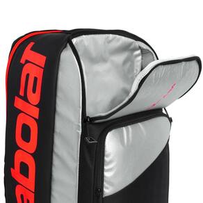 - Detalhamento: Três compartimentos de armazenamento para organizar seus pertences, com capacidade para transportar até três raquetes sem capa. Ideal também para itens essenciais do dia a dia, como laptop, garrafa de água, bolas, sapatos e acessórios. Conta ainda com um bolso frontal lateral adicional para maior organização dos seus objetos pessoais, além de alças reguláveis e acolchoadas para mais conforto. Laterais com o nome da marca em destaque e logotipo na parte frontal. Capacidade de 42 litros;