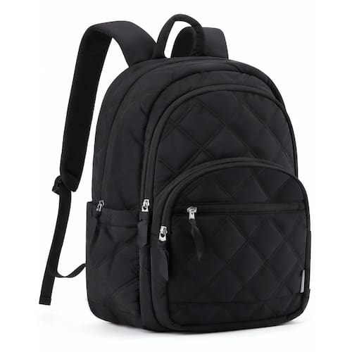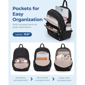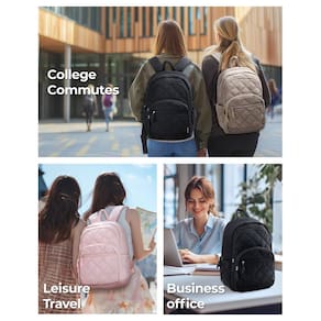 BAGSMART Mochila de viagem para faculdade para laptop feminina aprovada por aviões, Preto, Moderno - Ampla capacidade de armazenamento: organize sem esforço com os compartimentos espaçosos da mochila feminina BAGSMART Laptop. Equipado com 1 compartimento principal grande para livros e itens essenciais, uma capa dedicada para laptop de 15,6 polegadas, dois bolsos externos e um bolso de acesso frontal conveniente para itens de captura rápida. Dimensões: 17,3 × 11,8 × 19,8 cm garantem que você tenha espaço para tudo o que você precisa - Conforto melhorado: desfrute de conforto superior em movimento com alças acolchoadas e ajustáveis que distribuem o peso uniformemente. O painel traseiro de malha respirável da linda mochila feminina oferece suporte ergonômico e mantém você fresca durante o uso prolongado, garantindo uma experiência de transporte confortável, esteja você carregada de livros ou viagens leves - Companheiro de viagem versátil: Projetada para versatilidade, esta mochila de viagem para mulheres se integra perfeitamente à sua rotina de viagem. Compatível com TSA com uma alça traseira para bagagem para facilitar a fixação às alças da mala, é ideal para viagens, caminhadas e viagens diárias. Uma escolha confiável para faculdade, viajantes e aventureiros - Durabilidade excepcional: feita de tecido 75D durável e resistente à água, a mochila acolchoada universitária BAGSMART garante um desempenho duradouro. A espuma acolchoada de camada protege seu laptop de choques e batidas, enquanto o zíper robusto garante uma operação suave por muitos anos - O estilo encontra a praticidade: combinando praticidade com estilo contemporâneo, nossa pequena mochila feminina permite que você mostre seu estilo pessoal sem comprometer a funcionalidade. Perfeita para uso diário, trabalho ou lazer, é um acessório essencial que combina perfeitamente com qualquer estilo de vida
