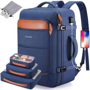 O design de malha de esponja respirável na mochila de laptop para homens e as alças acolchoadas ajudam na convecção do ar, ventilação e eliminação de calor, além de aliviar o desconforto do ombro. Esta mochila de bagagem é feita com alças acolchoadas escondidas que podem ser escondidas no painel traseiro com zíper quando não forem usadas. - Mochila de grande capacidade para viagens multiuso: experimente uma viagem elegante com esta espaçosa mochila de 42 litros, perfeita para 3 a 7 dias de itens essenciais. Medindo 20 x 14 x 7 polegadas, é ideal para aventuras como viagens, viagens de negócios, acampamentos e cruzeiros. Mochila de mão ideal para voar: esta mochila foi projetada para viagens sem esforço, passando suavemente de mochila para mala com alças acolchoadas. A conveniente alça de bagagem permite fácil empilhamento nas malas - A durabilidade encontra a proteção antifurto: Feita de poliéster durável e resistente à água e materiais resistentes a arranhões, esta mochila possui costura reforçada e um zíper duplo de metal para maior longevidade. Uma trava anti-roubo adiciona uma camada extra de segurança - Alças de ombro confortáveis e versáteis: o painel traseiro de malha de esponja respirável e as alças acolchoadas garantem o fluxo de ar e a ventilação, aliviando o desconforto nos ombros. O design exclusivo do esconderijo permite que as alças sejam armazenadas no painel traseiro com zíper - 3 cubos de embalagem e 1 bolso para sapatos: simplifique sua embalagem com três cubos de embalagem e um bolso exclusivo para sapatos. O bolso para sapatos mantém os sapatos separados e a porta USB embutida (carregador não incluído) permite carregar dispositivos em qualquer lugar
