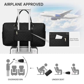 bolsa de viagem feminina - Bolsa de viagem com compartimento para sapatos – Adicionamos um compartimento separado para sapatos e uma bolsa de sapatos (tamanho: 43 x 30 cm). As bolsas de viagem femininas têm um compartimento para guardar seus sapatos ou roupas sujas, facilitando separá-las de suas roupas limpas ao viajar. Ela também vem com uma bolsa de higiene na qual você pode colocar seus cosméticos, produtos de cuidados com a pele ou produtos de higiene pessoal. (preto) - Bolsa de fim de semana de atualização de capacidade – para acomodar mais itens, aumentamos o comprimento e a altura das bolsas de fim de semana para mulheres, medindo 59 x 28 x 29,5 cm. Espaçosa o suficiente para armazenar de 3 a 5 dias de itens essenciais diários como roupas, sapatos, artigos de higiene pessoal, laptop, iPad e outros itens. Muito adequada para pessoas que viajam por longos períodos de tempo e longas viagens de negócios. - Bolsa feminina estilosa para o dia a dia – com o padrão de bordado cruzado mais moderno com uma cor rosa atraente para moda e estilo. Toda a costura é costurada à máquina e o tecido é leve, à prova d'água, com fechos de metal para tornar a bolsa resistente. - Bolsa de ginástica separada e úmida – a bolsa feminina tem um bolso interno à prova d'água com zíper para que você possa colocar roupas molhadas ou itens molhados dentro. Também pode ser colocada roupa suja dentro. A bolsa não só pode ser usada como bolsa, mas também pode ser bolsa de hospital ou bolsa de mãe. - Bolsa esportiva multiuso – pode ser usada como bolsa de viagem, bolsa feminina de fim de semana, bolsa de ginástica, bolsa de hospital para mamãe, bolsa de laptop e muito mais. As bolsas de mão para aviões também têm uma capa de carrinho na parte de trás para caber sobre a alça de bagagem para aliviar o peso da sua viagem. Pode ser usada não importa a ocasião.