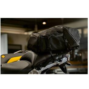 Compartimento principal impermeável graças ao fechamento em rolo e costuras seladas Compartimento para laptop no compartimento principal (à prova d'água) Compartimento principal pode ser dividido por uma base intermediária; a área inferior pode ser acessada separadamente Opção de expansão (acolchoada) na área inferior para um capacete Quatro bolsos externos, à prova de respingos (1 na parte superior, 2 nas laterais, 1 na frente) Bolso interno de malha na tampa Seção traseira com formato ergonômico Alças de ombro ajustáveis, acolchoadas e permeáveis ao ar Alça torácica ajustável em comprimento Removível, alça de quadril ajustável com dois bolsos com zíper integrados para um smartphone, etc. Alça de transporte na parte superior e no bolso externo frontal Zíperes emborrachados e repelentes à água Duas pequenas restrições na frente com fivelas de liberação rápida para proteger bagagem externa adicional Inclui dois cintos de fixação adicionais com fivelas de liberação rápida para fixação na motocicleta Material refletivo nas alças e impressão refletiva BMW Motorrad no bolso externo frontal Cor: Preto com detalhes em azul Marca: BMW Motorrad