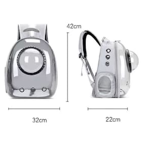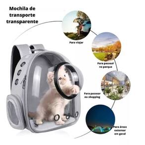 Caracteristicas: - Cor: Cinza, Preto e Vermelho - Medidas aproximadas: 32cm (Largura) x 22cm (Profundidade) x 42cm (Altura) - Composição: Oxford e Plastico PP - Marca: Fluffie - Conteúdo: 1 Mochila de Transporte Transparente - Suporta Até 6,5kg
