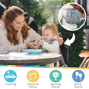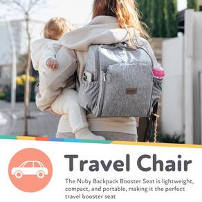 Assento elevatório Nuby Easy Go 2 em 1 com cinto de segurança ajustável de 5 pontos — Cadeira alta de viagem portátil com compartimento de armazenamento, comporta até 55 libras, mais de 9 meses — ELEVADOR E MOCHILA 2 EM 1 PARA MAIS DE 9 MESES: O assento elevatório Nuby Backpack é leve, compacto e portátil, tornando-o o assento elevatório de viagem perfeito - ALÇAS DE ASSENTO FÁCEIS DE AJUSTAR: as alças facilmente ajustáveis mantêm o assento elevatório em lugar para ajudar a manter seu filho seguro; comporta até 55 libras — Segurança trancada: com seu cinto de segurança de 5 pontos, seu filho pode se mexer e ainda ficar seguro em seu assento elevatório — CADEIRA PORTÁTIL PARA VIAGENS: mochila fácil de embalar com um compartimento espaçoso para itens essenciais; um ótimo complemento para seu equipamento de viagem para bebês — FÁCIL DE LIMPAR: o assento elevatório para mochilas é feito com tecido resistente à água que é facilmente limpo