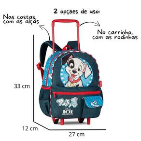A mochila de carrinho 101 Dálmatas DL27035 é perfeita para quem ama unir praticidade, fofura e organização. Confeccionada em poliéster resistente, traz o personagem em pelúcia com detalhes bordados e puxadores de zíper personalizados que deixam a peça ainda mais especial. Seu compartimento principal é espaçoso para levar todos os materiais escolares, além de dois bolsos frontais que ajudam a manter tudo separado e organizado. Nas laterais, bolsos telados garantem praticidade para carregar garrafinhas. Pensada para acompanhar a rotina escolar de forma versátil, pode ser Utilizado como carrinho, com rodinhas traseiras resistentes, puxador em alumínio e base frontal de apoio, ou nas costas, com alças ajustáveis e acolchoadas que oferecem mais conforto. Também conta com alça superior de mão para facilitar no dia a dia. Dimensões aproximadas: 33x27x12cm Marca: Não Informado