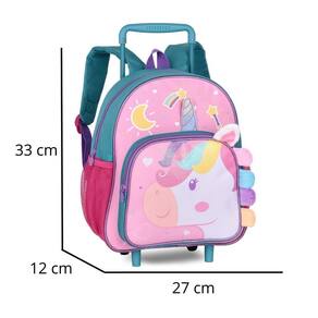 A mochila de rodinhas Clio Pets Unicórnio foi pensada para unir conforto, praticidade e encanto, tornando o dia a dia escolar muito mais leve e divertido. Ideal para meninas que amam o universo mágico dos unicórnios, ela oferece uma solução prática para transportar os materiais sem esforço. Possui compartimento principal espaçoso para livros, cadernos e pastas, além de bolso frontal que facilita a organização de itens menores. Conta ainda com bolsos laterais telados, ideais para garrafinha ou acessórios. O grande diferencial deste modelo está em suas rodinhas resistentes, que proporcionam um deslocamento suave, e no puxador em alumínio, leve e durável, que facilita o manuseio. Mesmo sendo uma mochila de carrinho, o modelo também dispõe de alças de costas ajustáveis, permitindo o uso nas costas sempre que necessário, oferecendo versatilidade no transporte. Confeccionada em poliéster resistente, com frente em silk e delicados detalhes em pelúcia e PVC, apresenta acabamento cuidadoso e visual encantador, característico da linha Clio Pets. Dimensões aproximadas: 33 x 27 x 12 cm Marca: Não Informado