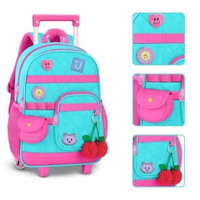 A mochila de carrinho da coleção Juju Teófilo é puro encanto e foi pensada para acompanhar as pequenas com muito estilo, conforto e praticidade na rotina escolar. Confeccionada em poliéster soft com acabamento em matelassê, ela traz patches emborrachados e de tecido que deixam o visual ainda mais delicado e divertido, além de acompanhar um charmoso chaveiro de cerejinhas e uma bolsinha exclusiva que completa o look de forma única. Possui compartimento principal amplo, ideal para organizar materiais escolares, pastas ou até uma troca de roupinhas, além de um compartimento frontal espaçoso com divisórias internas que ajudam a manter tudo no lugar. Na parte frontal, conta ainda com mais um bolso adicional de fácil acesso, perfeito para pequenos objetos, e bolsos telados nas laterais para garrafinhas ou itens de uso rápido. O carrinho com haste retrátil facilita o transporte no dia a dia, garantindo conforto também para crianças menores. As alças permitem o uso nas costas quando necessário, oferecendo versatilidade no uso. Dimensões aproximadas: 40x30x13cm. Marca: Não Informado