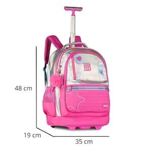 Um modelo exclusivo e cheio de estilo, a mochila de carrinho Rebecca Bonbon RB27016 é confeccionada em PVC holográfico com bordado de estrela, patches no painel frontal, etiqueta emborrachada e cadarços estampados, trazendo um design moderno e único. O compartimento principal é muito espaçoso e conta com divisória acolchoada para notebook e outra para tablet. Além disso, possui dois compartimentos frontais com fechamento por zíper, sendo um deles com divisórias internas, além de bolsos laterais telados duplos. Acompanha chaveiro triplo, incluindo um pompom com orelhinhas super charmoso, além de cartela de adesivos exclusivos da Rebecca Bonbon. Pode ser Utilizado como mochila de carrinho, com rodinhas resistentes, puxador de metal com duas alturas e trava, além de base de apoio frontal. Ou, se preferir, pode ser Utilizado nas costas, já que possui alças acolchoadas ajustáveis que ficam guardadas em compartimento traseiro fechado por zíper, junto com protetor de rodinhas para evitar sujeiras nas roupas. Conta ainda com alça de mão superior. Todos os puxadores de zíper são personalizados. Dimensões aproximadas: 48x35x19cm. Marca: Não Informado Ean: 7795028479428