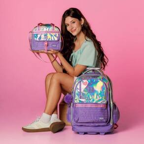 Um modelo exclusivo e cheio de estilo, a mochila de carrinho Rebecca Bonbon RB27016 é confeccionada em PVC holográfico com bordado de estrela, patches no painel frontal, etiqueta emborrachada e cadarços estampados, trazendo um design moderno e único. O compartimento principal é muito espaçoso e conta com divisória acolchoada para notebook e outra para tablet. Além disso, possui dois compartimentos frontais com fechamento por zíper, sendo um deles com divisórias internas, além de bolsos laterais telados duplos. Acompanha chaveiro triplo, incluindo um pompom com orelhinhas super charmoso, além de cartela de adesivos exclusivos da Rebecca Bonbon. Pode ser Utilizado como mochila de carrinho, com rodinhas resistentes, puxador de metal com duas alturas e trava, além de base de apoio frontal. Ou, se preferir, pode ser Utilizado nas costas, já que possui alças acolchoadas ajustáveis que ficam guardadas em compartimento traseiro fechado por zíper, junto com protetor de rodinhas para evitar sujeiras nas roupas. Conta ainda com alça de mão superior. Todos os puxadores de zíper são personalizados. Dimensões aproximadas: 48x35x19cm. Marca: Não Informado Ean: 7795028479565