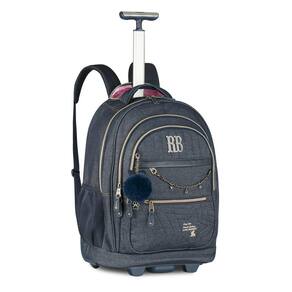 Esse kit da Rebecca Bonbon é completo e cheio de estilo A mochila de rodinhas RB27023, em jeans com detalhes em ouro velho, é super espaçosa, possui compartimento acolchoado para notebook e tablet, além de vários bolsos organizadores e bolsos laterais. Pode ser Utilizado tanto no carrinho, com rodinhas resistentes e puxador de metal, quanto nas costas, com alças acolchoadas escondidas no compartimento traseiro e proteção de rodas. Acompanha chaveiro de pompom com orelhinhas, correntinha com strass e cartela de adesivos. Dimensões: 48x35x19cm. A lancheira RB27025 é térmica, tem ótimo espaço interno, bolsinho frontal, três opções de alça mão, ombro e carona e combina perfeitamente com a mochila. Dimensões: 20x24x14cm. O estojo box RB27026 completa o kit com muito espaço: são 36 elásticos para organizar lápis, um estojo interno fechado por zíper e capacidade para até 100 itens. Dimensões: 22x16x6cm. Marca: Não Informado
