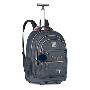 Esse kit da Rebecca Bonbon é completo e cheio de estilo A mochila de rodinhas RB27023, em jeans com detalhes em ouro velho, é super espaçosa, possui compartimento acolchoado para notebook e tablet, além de vários bolsos organizadores e bolsos laterais. Pode ser Utilizado tanto no carrinho, com rodinhas resistentes e puxador de metal, quanto nas costas, com alças acolchoadas escondidas no compartimento traseiro e proteção de rodas. Acompanha chaveiro de pompom com orelhinhas, correntinha com strass e cartela de adesivos. Dimensões: 48x35x19cm. A lancheira RB27025 é térmica, tem ótimo espaço interno, bolsinho frontal, três opções de alça mão, ombro e carona e combina perfeitamente com a mochila. Dimensões: 20x24x14cm. O estojo box RB27026 completa o kit com muito espaço: são 36 elásticos para organizar lápis, um estojo interno fechado por zíper e capacidade para até 100 itens. Dimensões: 22x16x6cm. Marca: Não Informado