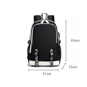 Tamanho: 31x15x45cm Material: tecido Oxford Peso: 0,58 kg Embalagem: 1 x Mochila ? A mochila Cartoon é ergonômica, as alças são ajustáveis e removíveis. Você pode ajustar seu comprimento de acordo com sua altura e corpo. Alivie a pressão no ombro e na almofada traseira com material altamente permeável. ? A mochila escolar de anime é perfeita para adolescentes. Multifuncional para escolas, universidades, esportes ao ar livre, camping, caminhada, viagens, piquenique, etc. ? Espaçosa o suficiente: a mochila é grande o suficiente para guardar a maioria das necessidades escolares e diárias, como livros didáticos, fichários, cadernos, calculadora, canetas e lápis, lancheira, casaco ou camisas pequenas, telefone celular, cartões, carregadores portáteis, alguns caixas, tocador de MP3 e um laptop, no máximo polegada ? Experiência de uso perfeita: alças de design exclusivo aliviam a pressão no ombro e a almofada, com material de alta permeabilidade, nunca cobrirá o suor quando você a carrega muito tempo. ? Nosso serviço: Estamos comprometidos em criar o melhor serviço de produto para cada cliente. Se este produto não atender às suas expectativas, sinta-se à vontade para entrar em contato conosco, faremos o melhor para lidar com ele até que você fique satisfeito.