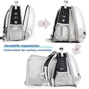 Mas isso não é tudo: nossa mochila é expansível, oferecendo espaço dobrado para o seu animal de estimação se esticar e se movimentar. Além disso, uma porta lateral e um bolso em material de rede anti-arranhões facilitam a entrada e saída do seu animal de estimação, e a mochila ainda vem com um mini ventilador que se encaixa perfeitamente no bolso, mantendo seu animal de estimação fresco durante o clima quente.