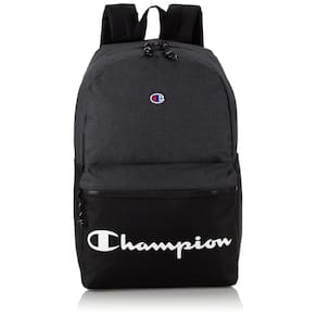 Mochila Champion Manuscript, preta, tamanho único — Bolso frontal com zíper — Organizador interno — Bolso lateral para garrafa de água — Manga deslizante para laptop — Alça e parte traseira acolchoadas — Logotipo bordado