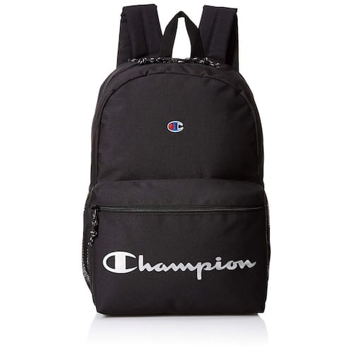 Mochila Champion Youthquake, preta, tamanho juvenil — Alças ajustáveis — Bolso frontal com zíper e organizador interno — Bolsos laterais para garrafas de água — Capa interna para laptop — Acolchoado no painel traseiro — Bordado com a marca — A faixa etária mínima atualizada para a faixa etária é de 8 a 12 anos