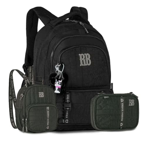 Versátil e encantador, este kit escolar reúne tudo o que os estudantes precisam para o dia a dia. A mochila RB27006 oferece espaço de sobra para os materiais escolares, com compartimentos acolchoados para notebook e tablet, três bolsos frontais com zíper um com divisórias organizadoras , bolsos laterais telados, bolso antifurto traseiro e alças acolchoadas para máximo conforto. Seu design moderno com matelassê de estrelas e corações, forro rosa listrado e acessórios exclusivos como chaveiro pompom, mascote em 3D e cartela de adesivos tornam essa mochila única. Dimensões aproximadas da mochila: 44x33x14cm. A lancheira RB27007 traz um diferencial incrível: modelo 2 em 1, pode ser Utilizado tanto como lancheira transversal quanto como mochilinha de costas. Possui compartimento principal com revestimento térmico, bolso frontal de fácil acesso e bolsos laterais telados, além de alça de mão superior. Dimensões aproximadas da lancheira: 27x20x12cm. O estojo box RB27004 garante a organização dos materiais de escrita com 36 elásticos, compartimento extra com zíper e espaço para até 100 canetas e lápis. Dimensões aproximadas do estojo: 22x16x6cm. Um kit completo que une versatilidade, qualidade e o charme inconfundível da Rebecca Bonbon. Marca: Não Informado