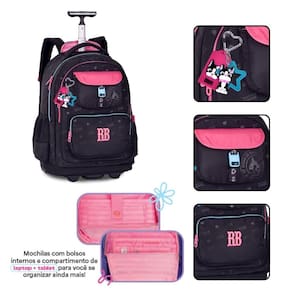 Este Kit é a combinação perfeita para quem busca elegância, organização e muita praticidade no dia a dia escolar. A mochila RB26222 é um modelo super premium da Rebecca Bonbon, desenvolvida em material soft com acabamento em jacquard, trazendo um visual moderno, resistente e muito sofisticado. Possui zíperes coloridos, cadarço logado acetinado e estampa personalizada que dão um charme único à peça. O compartimento principal é extremamente espaçoso e conta com espaço reservado para notebook, garantindo praticidade para a rotina escolar. Na parte frontal, ela oferece mais três compartimentos com fechamento por zíper, incluindo dois bolsos estilosos que facilitam a organização dos itens do dia a dia. Nas laterais, bolsos telados perfeitos para garrafinhas ou objetos de acesso rápido. O modelo é 2 em 1, podendo ser tanto nas costas, com alças acolchoadas super confortáveis, quanto no modo carrinho, com puxador e rodinhas resistentes. Quando Utilizado nas costas, voce pode prroteger as rodinhas para não sujar sua roupa Acompanha chaveiro-tag de borracha e penduricalhos exclusivos da marca. Dimensões aproximadas: 48x35x19cm. O kit acompanha o Estojo Box RB26226, confeccionado no mesmo material soft com silk exclusivo, zíperes coloridos e cadarço logado acetinado. Possui 36 elásticos internos para lápis e canetas e ainda conta com um estojo interno adicional com fechamento próprio, garantindo organização extra. Sua capacidade total comporta cerca de 100 lápis ou canetas, com dimensões aproximadas de 22x16x6cm. A lancheira RB26228 é confeccionada em material resistente, com revestimento térmico que mantém os alimentos na temperatura ideal. Possui compartimento principal espaçoso e mais dois bolsos frontais, todos com fechamento por zíper, além de bolsinhos telados nas laterais. Seu grande diferencial são as alças versáteis: pode ser Utilizado como mochilinha nas costas, no ombro com a alça transversal ou pela alça superior de mão, garantindo praticidade e conforto no dia a dia. Dimensões aproximadas: 27x20x12cm. Um conjunto completo, moderno e perfeito para quem deseja qualidade premium e organização impecável todos os dias.