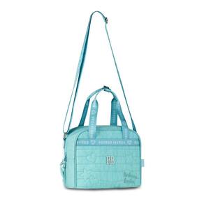 Lancheira RB27003: confeccionada em nylon no mesmo estilo matelassê da mochila, com revestimento térmico para conservar os alimentos, alça de mão, alça de ombro ajustável e alça carona para acoplar em mochilas de rodinhas. Os puxadores também são personalizados, reforçando o charme da linha. Dimensões: 20x24x14cm.