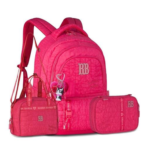 Este kit combina funcionalidade, conforto e muito estilo em um conjunto completo da Rebecca Bonbon. A mochila RB27006 traz design sofisticado com matelassê em estrelas e corações, forro rosa listrado e amplo espaço interno, incluindo compartimentos acolchoados para notebook e tablet, três bolsos frontais um deles com divisórias organizadoras , bolsos laterais telados e bolso antifurto traseiro. Os detalhes encantadores incluem chaveiro pompom de coração, mascote em 3D, medalhinha de metal e cartela de adesivos exclusivos. Dimensões aproximadas da mochila: 44x33x14cm.