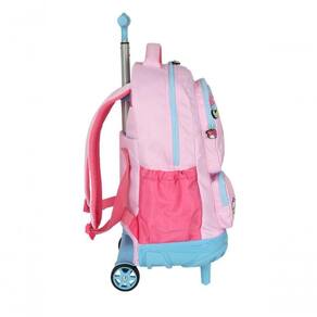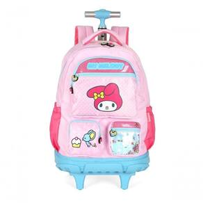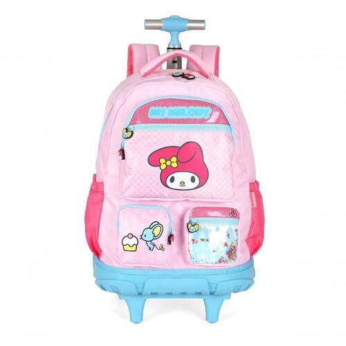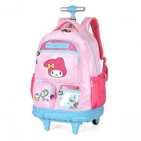 A Mochila de Rodinhas My Melody MC49694SR faz parte da coleção oficial My Melody, amiguinhos da Hello Kitty, e foi desenvolvida para unir praticidade, conforto e estilo em qualquer ocasião. Confeccionada em náilon resistente, possui dimensões de 46 x 34 x 22 cm, capacidade aproximada de 28 litros, sendo classificada como mochila média e compatível com 18 polegadas, ideal para uso escolar ou no dia a dia.