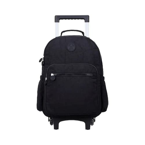 Mala com Rodas produzida em material crinkle resistente . Possui 1 compartimento principal amplo com zíper, 2 bolsos frontais com zíper , 2 bolsos laterais, puxadores emborrachados personalizados. Alças acolchoadas com regulagem para maior conforto e versatilidade. Costas acolchoadas. Acompanha chaveiro de pelúcia.