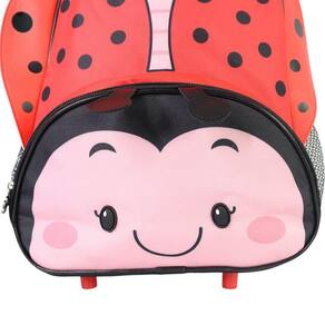 Seus filhos vão adorar ir à escolinha com a Mochila Joaninha. Perfeita para levar todo o material de forma prática e organizada. Ela conta com estampa linda e design de Joaninha que as crianças adoram. Além disso, ela possui bolso frontal ideal para lápis e demais acessórios e bolsos laterais para copos ou garrafas. Suas alças e costas alcochoadas permitem que os pequenos tenham muito conforto para levar a mochila para todos os lugares. Com esta linda mochila o dia-a-dia dos pequenos vai ficar ainda mais divertido, além de um detalhe 3D no formato das antenas de Joaninha. ESPECIFICAÇÕES:Material: PoliésterDimensões: Alt. Alça Baixa: 36cm x Alt. Alça Alta: 60cm Larg: 27cm x Capacidade: 14 Litros Profundidade: 11cm Peso: 0,350g aprox. CONTÉM:01 Mochila Infantil com Rodinhas Joaninha