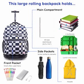 Viaje, volte para a escola ou durma na casa do pijama com estilo, com seus pertences bem guardados na mochila rolante J World Sunrise. A versatilidade da mochila com rodas Sunrise permite que ela funcione tanto como bagagem de mão rolante quanto como mochila com tiras para estudantes. Possui alça telescópica de alumínio leve, rodas macias e silenciosas e molde de proteção inferior para maior durabilidade. Organize todos os seus pertences com um bolso frontal equipado com porta-lápis, chaveiro e bolso de malha, perfeito para guardar itens que podem ser facilmente acessados. Para quem precisa de hidratação em trânsito, tem bolsos laterais de malha que são ideais para guardar garrafas de água e vários outros recipientes para bebidas.