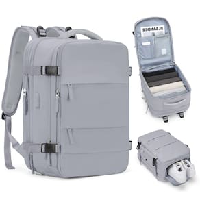 coofay Casual ou versátil, Cinza A, Expansível, Mochilas de viagem - ?Design expansível extragrande?Os bolsos para roupas do dia a dia podem conter de 6 a 8 blusas ou calças leves. Esta bolsa de viagem também possui um espaço de capacidade expansível para colocar mais roupas, juntamente com alças de roupas, atendendo às necessidades das viagens curtas de uma família. O compartimento separado para laptop pode acomodar um laptop de até 15,6 polegadas, atendendo aos seus requisitos de trabalho ou lazer diário. - Compartimento separado para sapatos e bolso úmido?O compartimento para sapatos pode conter um par de chinelos ou tênis de cano baixo, permitindo que você troque livremente em diferentes estados de viagem, viagens de negócios e esportes ao ar livre; o bolso molhado é feito de material impermeável de alta densidade, que pode ser utilizado para armazenar itens úmidos, tornando sua estadia em um hotel ou apartamento mais conveniente. - Design de porta USB: esta mochila tem uma porta de carregamento USB, que pode ser conectada a um carregador portátil dentro da bolsa e um celular conectado à parte externa da bolsa por meio de um cabo de dados, permitindo que você carregue seu celular ou iPad enquanto caminha, reduzindo a carga em suas mãos e evitando perder informações. Observe que a mochila não vem com um carregador portátil e cabo de dados, é apenas para a conveniência do carregamento do celular. - ?Aprovado pela maioria dos voos?As dimensões externas são 46 × 32 x 21 cm (A × L × P), peso de 1,3 kg (medição manual, apenas para referência, sujeito à medição real). Esta mochila atende aos requisitos de embarque e pode ser aberta e dobrada 180 graus como uma mala, que pode passar rapidamente pela segurança do aeroporto e é especialmente projetada para viagens de avião. - ?Conforto e segurança? Design confortável com fluxo de ar, acolchoamento ventilado espesso e macio com vários painéis oferece suporte para as costas. Alças de ombro respiráveis e ajustáveis e uma fivela no peito para aliviar a pressão no ombro. Esta mochila pode ser colocada no carrinho da mala para facilitar a viagem. Bolso oculto com zíper antirroubo na parte de trás da mochila para evitar que seus pertences sejam roubados. - ?Adequada para muitas ocasiões? A mochila casual é adequada para viagens, negócios, trabalho, caminhadas, viagens de curto prazo, férias de fim de semana e outras atividades. Se você tiver alguma dúvida, , ficaremos felizes em resolver seus problemas; se você não estiver satisfeito dentro de 1 mês, poderá devolvê-la gratuitamente.