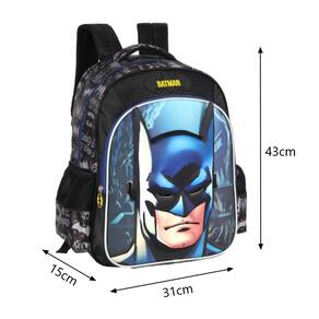 Mochila de Costas Luxcel Batman Preto   A Mochila de Costas Batman é perfeita para quem busca estilo, praticidade e conforto no dia a dia escolar. Com um design moderno e inspirado no universo do Batman, ela combina cores vibrantes e detalhes exclusivos que encantam os fãs.   Fabricada em material resistente, garante durabilidade para acompanhar a rotina intensa dos estudantes. Seu compartimento principal espaçoso permite guardar livros, cadernos, estojos e outros materiais escolares com organização e segurança. Além disso, conta com bolsos laterais ideais para garrafinhas e bolso frontal com zíper para pequenos objetos.   As alças acolchoadas e ajustáveis proporcionam mais conforto no transporte, enquanto o formato ergonômico distribui melhor o peso nas costas. É ideal para escola, passeios e outras atividades do dia a dia.   Características da Mochila Escolar: - 1 Bolso Principal com bastante espaço - 1 Bolso Frontal com fechamento em zíper - 2 Bolsos laterais para squeeze - Alças de costas acolchoadas e ajustáveis - Alça de mão reforçada na parte superior - Acompanha Máscara do Batman resistente - Puxadores personalizados - Tagg de identificação - Material: 70% Poliéster 30% PVC - Forro: 100% Poliéster   Dimensões da Mochila Escolar: Altura: 43 cm Largura: 31 cm Profundidade: 15 cm   Conteúdo: - 1 Mochila - 1 Máscara