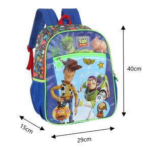 Mochila Escolar de Costas Toy Story   A Mochila de Costas do Toy Story Luxcel é perfeita para transportar material escolar ou para uso diário. Com um design moderno e funcional, essa mochila possui amplo espaço interno, permitindo que você carregue tudo o que precisa de forma organizada e prática. Essa mochila possui um compartimento principal grande, com espaço de sobra para seus livros, cadernos e demais itens, além disso, conta com dois bolsos laterais para garrafa, ou outros objetos pequenos. As alças acolchoadas e ajustáveis proporcionam mais conforto no transporte, enquanto o formato ergonômico distribui melhor o peso nas costas. É ideal para escola, passeios e outras atividades do dia a dia.   Características da Mochila Escolar: - 1 Bolso Principal com bastante espaço - 1 Bolso Frontal com fechamento em zíper - 2 Bolsos laterais para squeeze - Alça de mão reforçada na parte superior - Alças de costas acolchoadas e ajustáveis - Tagg de identificação - Fechamento em Zíper personalizado - Material: 70% Poliéster 30%PVC - Forro: 100% Poliéster   Dimensões Aproximadas: - Altura: 40 cm - Largura: 29 cm - Profundidade: 15 cm