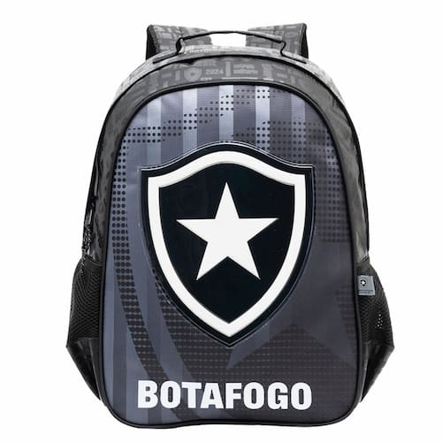 Características: - Confeccionada em Poliéster - Dois bolsos laterais em mesh - Escudo oficial do Botafogo - Frente Sublimada + PVC Patch - Compartimento principal espaçoso - Alças de mão de tira forrada - Alças de costas acolchoadas e ajustáveis - Puxador corda com plástico - Forro Interno Personalizado