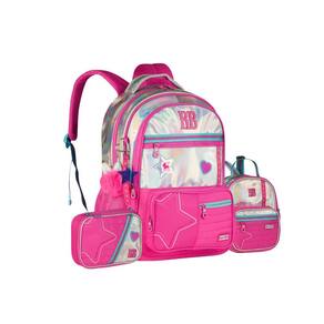 Características Mochila: - Alça de mão - Alça de costas - Bolsos laterais telados - Forro interno rosa - Compartimento de Laptop e Tablet - Mosquetão formato de coração - Chaveiro pompom e estrela acrílico - Logo metalizado - Patches atoalhados - Puxador personalizado - Zíper tratorado