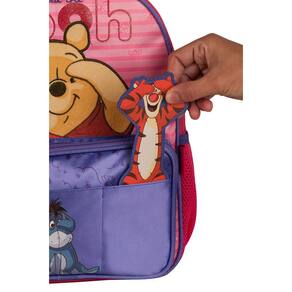 Leve, fofa e cheia de detalhes encantadores A Mochila de Costas Ursinho Pooh PO27042 é confeccionada em cetim com personagens em pelúcia, logo em silk e aplicação de glitter, trazendo o charme inconfundível do Pooh e seus amigos. Possui compartimento principal espaçoso, ideal para o dia a dia escolar, além de bolso frontal com fechamento por zíper - onde dá para brincar de pique-esconde com os personagens - e bolsos laterais telados perfeitos para garrafinhas. Suas alças são confortáveis, acolchoadas e ajustáveis, e a alça superior de mão oferece ainda mais praticidade na hora de transportar. Dimensões aproximadas: 33x27x12cm. Marca: Não Informado