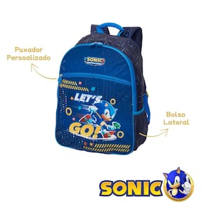 Conteúdo da Embalagem: 989k01 - 1 Mochila Rodas Sonic Let's Go 989k11 - 1 Lancheira Térmica Sonic 989k17 - 1 Estojo Duplo Sonic