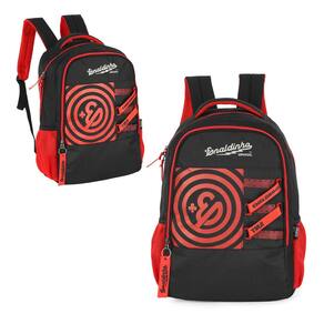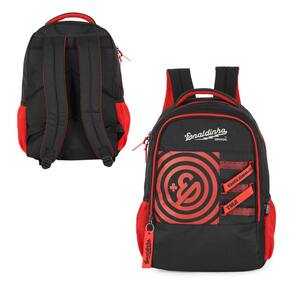 Características Mochila: - Alça de mão - Bolso frontal - Bolsos laterais - Detalhe frontal de fita estampada - Puxador gigante personalizado - Logo emborrachado