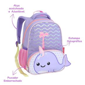 Características Lancheira : - Estampa encantadora de narval com cores vibrantes Holográficas - Interior com forro térmico, que ajuda a conservar a temperatura dos alimentos - Alça de mão e alça de costas ajustável para facilitar o transporte - Alça Carona - Fechamento em zíper reforçado - Material leve, resistente e fácil de limpar