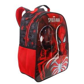 A frente em PVC vincado traz o Homem-aranha em destaque, criando um visual marcante e cheio de personalidade. As alças de ombro são acolchoadas para garantir conforto durante o uso, e os bolsos laterais em mesh facilitam o acesso rápido a garrafinhas ou pequenos objetos. A peça também conta com zíper tratorado resistente e puxadores em metal personalizados, que completam o visual arrojado.