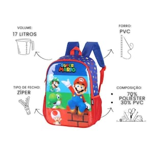 Mochila Costas Super Mario Bros Infantil Escolar Meninos - Luxcel Apresentamos a incrível Mochila de Costas Super Mario, perfeita para as aventuras escolares do seu filho Com um design divertido que traz a icônica presença do Super Mario, não é apenas estilosa, mas também super funcional. A mochila de Costas facilita o transporte, ideal para meninos em idade escolar. Com estampa vibrante dos personagens, alças ajustáveis e amplo espaço interno, é perfeita para o dia a dia na escola com estilo e diversão. Características Mochila: Alça de mão Alça de costas Bolsos laterais Identificador personalizado Puxadores em Zíper Especificações Mochila: Marca: Super Mario Medidas Aproximadas Mochila A x L x P : 41cm x 30cm x 14cm Peso: 500g Aprox Capacidade: 17L Composição do produto: Poliéster e PVC Conteúdo da Embalagem: IS41381MO - 1 Mochila Costas Super Mario As cores podem variar entre as imagens mostradas acima e o produto. Imagens meramente ilustrativas. Todas as informações divulgadas são de responsabilidade exclusiva do fabricante. de 90 dias contra defeito de fabricação.