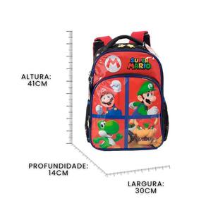 Mochila Costas Super Mario Bros Infantil Escolar Meninos - Luxcel Mochila de costas infantil Super Mario Bros, ideal para meninos em idade escolar. Com estampa vibrante dos personagens, alças ajustáveis e amplo espaço interno, é perfeita para o dia a dia na escola com estilo e diversão. Características Mochila: Alça de mão Alça de costas Bolsos laterais Identificador personalizado Puxadores em Zíper Especificações Mochila: Marca: Super Mario Medidas Aproximadas Mochila A x L x P : 41cm x 30cm x 14cm Peso: 500g Aprox Capacidade: 17L Composição do produto: Poliéster e PVC Conteúdo da Embalagem: IS41391MO - 1 Mochila Costas Super Mario As cores podem variar entre as imagens mostradas acima e o produto. Imagens meramente ilustrativas. Todas as informações divulgadas são de responsabilidade exclusiva do fabricante. de 90 dias contra defeito de fabricação. Marca: Não Informado