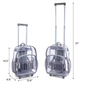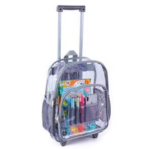 Mochila transparente transparente COVAX, bolsa de livros transparente resistente ao frio, mochila transparente resistente ao frio com rodas (cinza) — Mochila com rodinhas resistente ao frio: construída com material de PVC resistente ao frio, tornando-a a mochila transparente ideal no inverno frio. - Mais conveniente e portátil: esta mochila transparente com rodas dará um descanso às suas costas. Além de poder correr com ele nas costas, você também pode rolar facilmente pelo aeroporto. - Compartimento grande: o compartimento principal é espaçoso e oferece espaço suficiente para atender às suas necessidades diárias. As características adicionais incluem um grande bolso frontal com zíper e dois bolsos laterais de malha. - Mochila com rodas transparentes: totalmente equipada com rodas giratórias silenciosas e uma alça retrátil, permite que você navegue suavemente de um lugar para outro, e você pode colocar as alças no painel traseiro acolchoado para evitar danos às alças. - Multiuso: bolsa transparente perfeita e mochila transparente de trabalho. Superar eventos esportivos, estádios e shows onde são necessárias mochilas transparentes. Passando pela segurança do aeroporto rapidamente.
