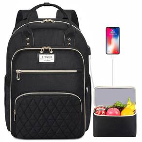 Nossa marca: A ETRONIK é uma nova marca focada em fornecer mochilas de qualidade a um preço acessível. Características: - Compartimento para laptop: um compartimento acolchoado com fecho aderente pode proteger seu laptop contra danos, com uma capacidade máxima de 15,6 polegadas. - Porta de carregamento USB: a porta USB externa com cabo de carregamento integrado oferece um carregamento conveniente do seu telefone em qualquer lugar. Mas observe que a mochila em si não liga, você precisa colocar um carregador portátil dentro sozinho. Mochila de viagem. Com espuma interna de alta densidade e forro à prova de vazamento, garantindo que não vaze. Mantenha fresco ou aquecido por cerca de 5 a 6 horas. A alça da bolsa facilita o transporte em qualquer lugar. - Lancheira e mochila para laptop: Tamanho da mochila para laptop. 43 x 30 x 23 cm, tamanho da lancheira: 28 x 16,5 x 16,5 cm. A lancheira extra permite que você mantenha seus outros itens fora da bagunça do cheiro ou maior espaço na mochila para carregar mais itens quando não estiver carregando uma lancheira. Classificação etária: acima de 12 anos - Lancheira com isolamento independente: a mochila para laptop inclui uma lancheira isolada removível. A lancheira removível à prova d'água é feita de folha de alumínio fácil de limpar e pano de poliéster de alta qualidade para carregar lancheiras, frutas, bebidas etc. Pode manter a comida aquecida ou manter o resfriamento por cerca de 4 a 5 horas. Permite que você desfrute de deliciosos alimentos frescos - Design da porta de carregamento USB: em ambos os lados da mochila de viagem, projetamos plugues USB e bolsos antirroubo. Você pode conectar facilmente seu celular à porta USB, carregar a qualquer hora, em qualquer lugar. Para permitir que você encontre rapidamente a chave e evite perdas, projetamos a função de chaveiro no pequeno bolso frontal - Vários bolsos e grande capacidade: a mochila de viagem tem um bolso principal com compartimento para laptop para fornecer uma boa proteção para laptops. O compartimento principal e o bolso elástico podem ajudá-lo a colocar suas roupas, arquivos A4. O bolso frontal pode ser aberto 180°, mantenha seus pertences pessoais arrumados. Também é um ótimo presente para suas irmãs, namoradas, mãe, etc - Confortável: esta mochila de trabalho é feita de tecido de poliéster, e o zíper de metal duplo é mais fácil de abrir ou fechar e não rasgará. O design da alça da embalagem facilita o transporte. A alça de ombro é feita de esponja respirável e é larga o suficiente, mesmo que seja usada no verão, não deixará você se sentir sensual e exaustão. Esta mochila de almoço é perfeita para o trabalho, viagens e uso diário