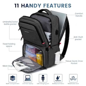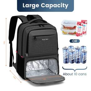 Lancheira, mochila térmica térmica para homens e mulheres, mochila para laptop com bloqueio de RFID com porta USB, Preto, Trabalho - [Função térmica e à prova de vazamentos] A mochila de almoço tem um compartimento de isolamento no bolso frontal, não apenas mantém a comida quente, mas também mantém suco frio ou bebidas por cerca de 3 a 5 horas, permitindo que você desfrute de comida deliciosa a qualquer momento. Dimensão do compartimento do recipiente de alimentos: 33 x 15 x 20 cm - [Design inteligente] Quando você armazena alimentos ou frutas no compartimento da lancheira, a área do compartimento principal da mochila de almoço será reduzida para fornecer mais espaço para o compartimento do recipiente de alimentos. Quando você não precisa carregar alimentos, a camada isolada pode ser dobrada para que você possa carregar mais itens no bolso principal. Uma combinação de lancheira e mochila para laptop. - [Grande capacidade] O bolso frontal de acessórios pode anexar muitas coisas como telefone, canetas, carteira, chaves, carregador e assim por diante. O maior compartimento principal comporta roupas de viagem de 2-3 dias, também comporta acessórios, notebook, artigos de higiene pessoais, dimensões: 33 x 19,8 x 48 cm. Os segundos compartimentos grandes podem guardar seu laptop de 17,3 polegadas, livros e assim por diante - [Carregamento USB e mochila antirroubo] A porta USB externa oferece um carregamento conveniente de seus eletrônicos sempre e onde quer que eles estejam desligados. O cabo de carregamento integrado oferece um carregamento conveniente do seu dispositivo eletrônico em qualquer lugar. Bolso antirroubo e alça de amarração nas costas: o bolso com zíper invisível antirroubo na parte traseira aumenta a segurança e afasta seus valores dos perdidos. As alças de amarração nas costas permitem que a mochila levante e carregue facilmente ao viajar com a bagagem. - [Sendo durável e confortável] Bartack Stitch em todas as áreas de alta carga, oferece desempenho forte e duradouro com peso máximo e deixa sua mochila resistente a rasgos. Poliéster emendado de alta densidade oferece mais conforto e mais suporte de carga. A mochila térmica de viagem é adequada para escritório, piquenique, praia, viagens, atividades ao ar livre e internas. Este item não se destina a ser utilizado por crianças menores de 12 anos.
