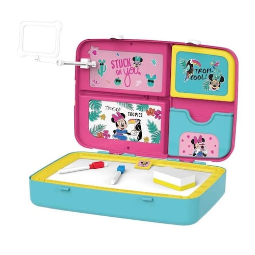 Com a Mochila de Atividades Minnie a diversão está garantida A Mochila de Atividades Minnie da Multikids possui função 2 em 1: Mochila e Maleta de Atividades, possibilitando levar a brincadeira e diversão a qualquer lugar Ao abrir a mochila, descubra diversos acessórios inclusos, como letras e símbolos em ímãs, canetas, giz e apagador, cards da Minnie e muito mais. A lousa é retrátil e dupla face, possibilitando escolher entre brincar com a Lousa Branca ou com a Lousa de Giz. Embarque com a ratinha mais amada do mundo, a Minnie, nessa brincadeira cheia de diversão que estimula coordenação motora, criatividade, desenvolvimento artístico e imaginação. Ean: 7908414442917